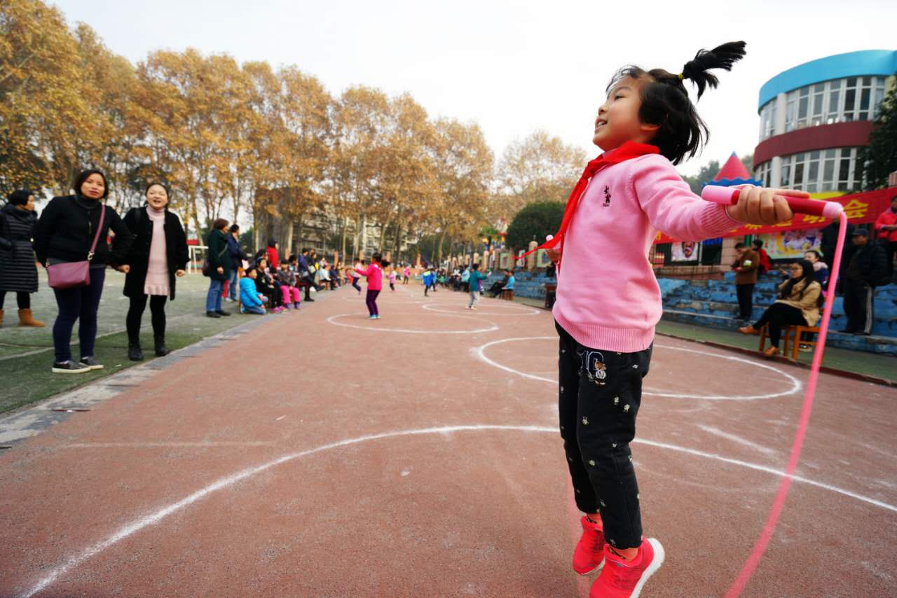 ,华中师范大学附属小学举办了秋季花样运动会,旨在增进学生体质、营造良好教育氛围。华师附小的花样运动会设置的体育项目有很多已经形成了传统,跳长绳、抱球接力、滚轮胎接力、袋鼠跳接力赛等项目深受同学们的欢迎,这些项目大都鼓励参与,只有充分发挥个人能力,同时还要发挥团队协作的力量才能取得好成绩。