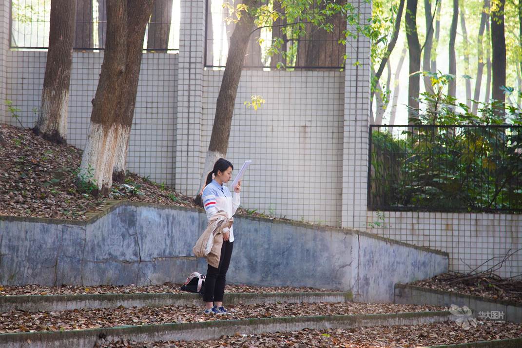生科楼前的空地上,清洁阿姨拿着大扫把,清扫着一夜的落叶,木犀树下,混着清香,每片砖瓦都干净整洁。