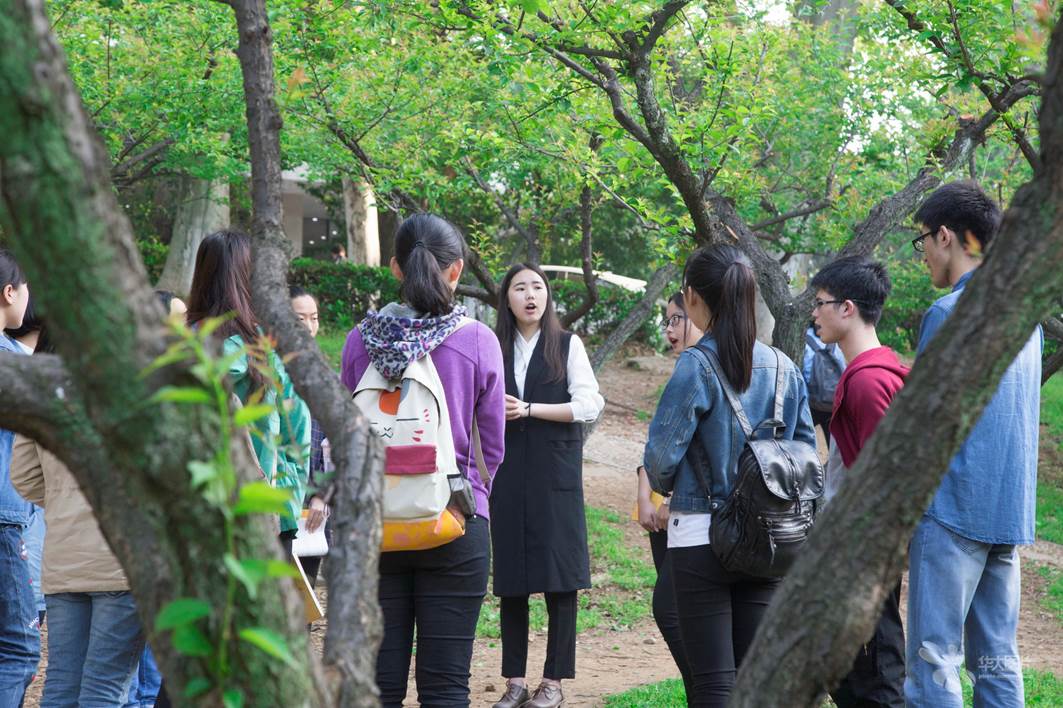 梅园下,日语社组织晨读,练习日语发音。从他们身旁经过,反复听听不懂的语言,竟也不自觉跟着一起念道:“おはよう”