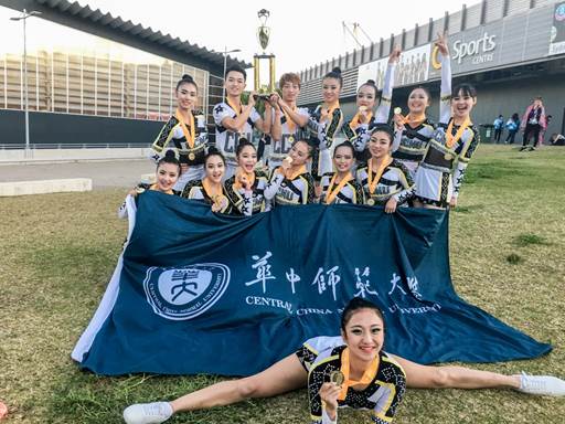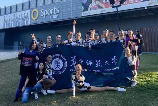 2016年8月26—28日,华中师范大学啦啦操队在教练员付晓芬、王一民老师带领下,受邀参加在澳大利亚悉尼奥林匹克公园举行的亚澳洲际啦啦操锦标赛,并获得大学生公开组的第一名。