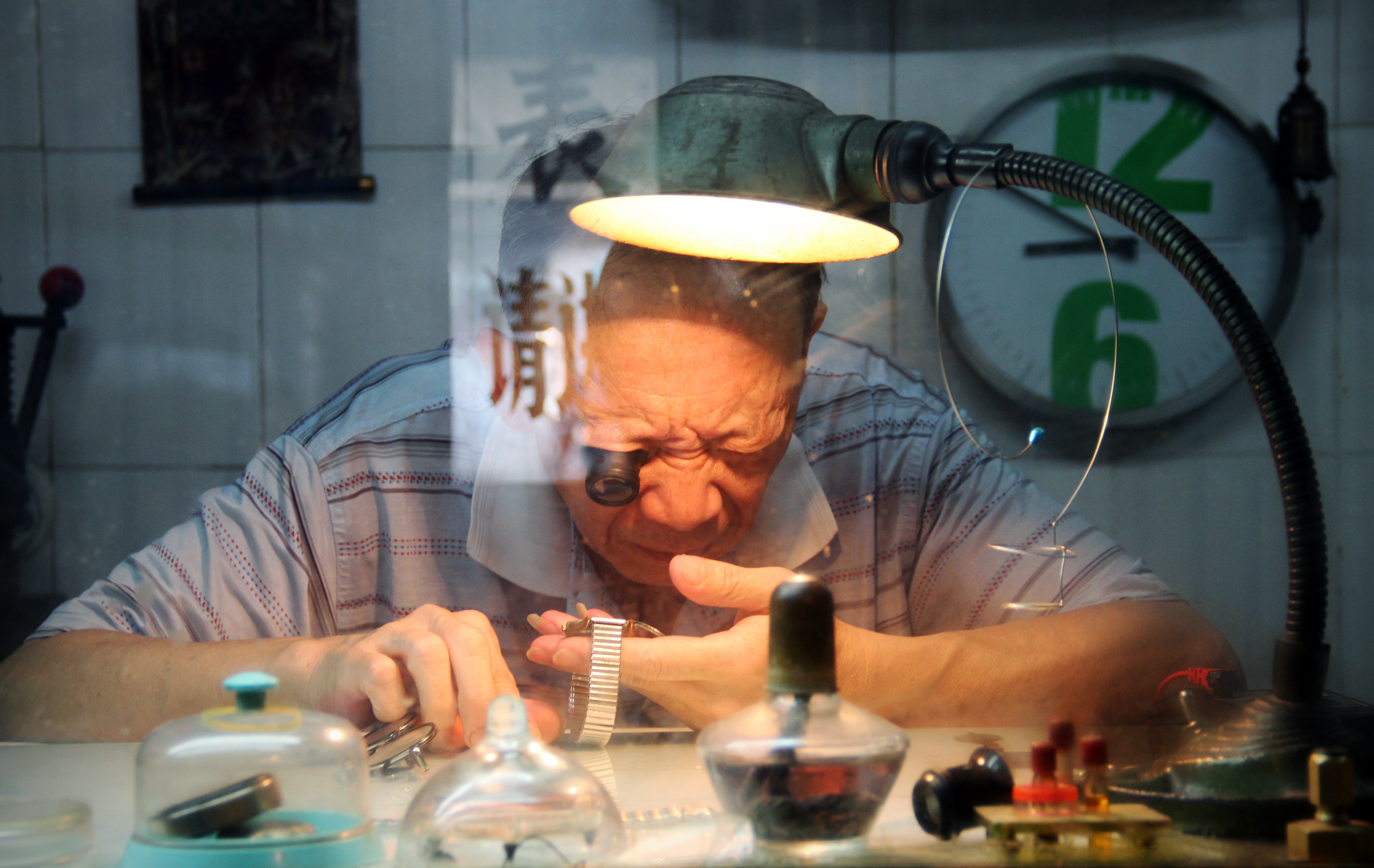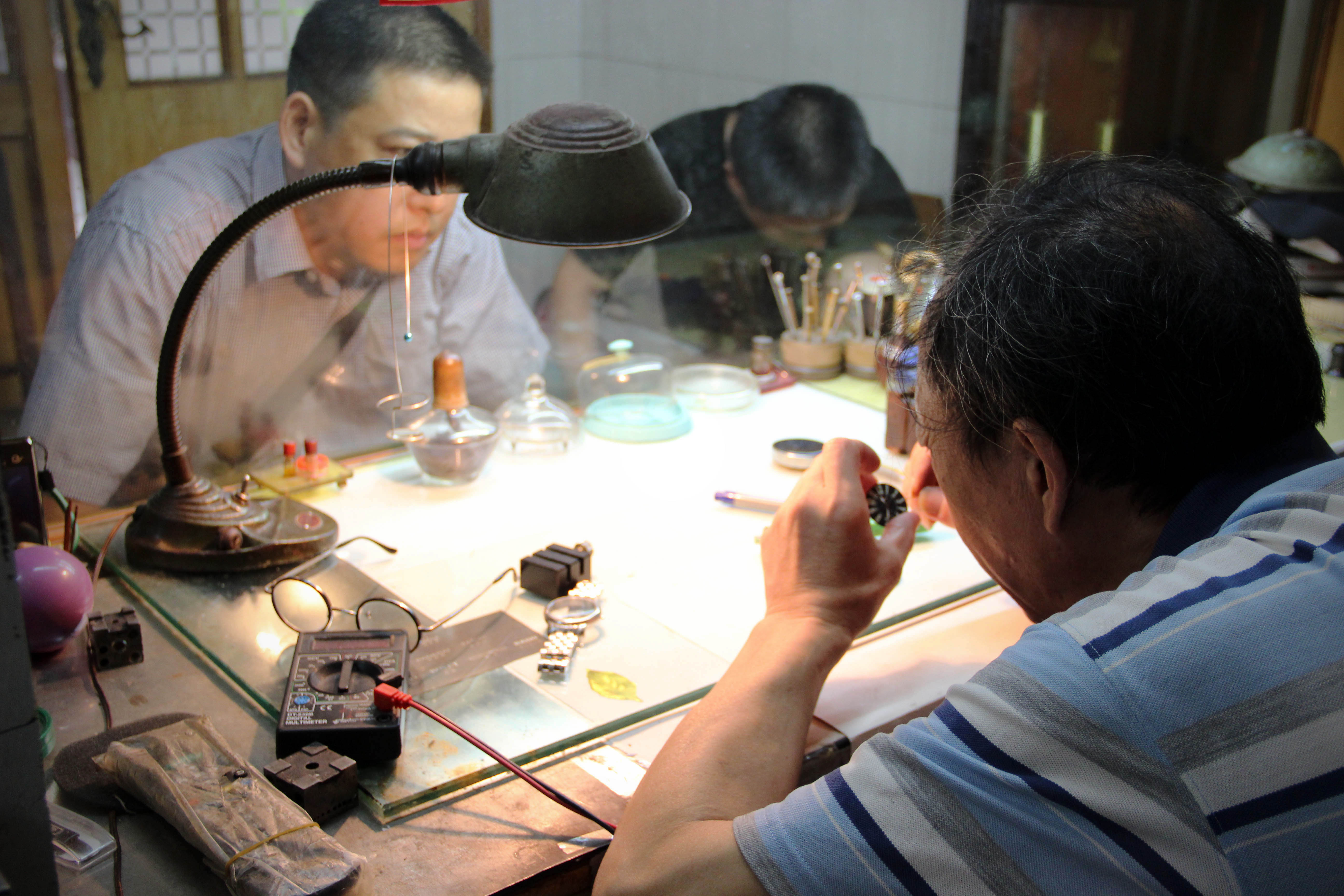 店里的修表师傅叫袁正建。袁师傅是在十四岁左右开始学的修表,干了大半辈子这个行当。